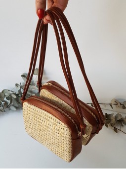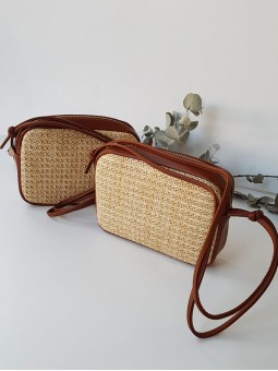 Cartera importada de rafia combinada con ecocuero. *Consulta las medidas abajo en la descripción.
