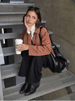 Cartera de PU tipo matelassé color suela. *Consultá las medidas abajo en la descripción.