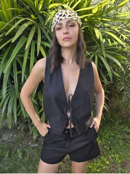 Chaleco de lino , con tiras para atar enfrente, con forreria interna. * Consultá las medidas abajo en la descripción.
