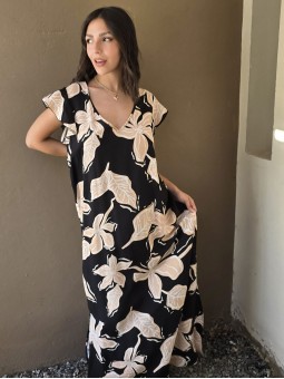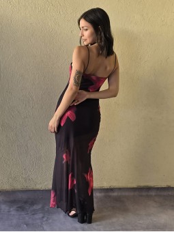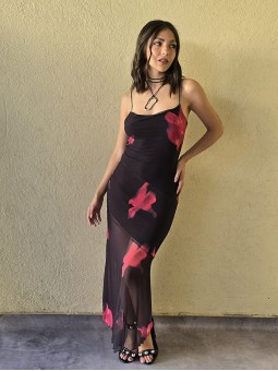 Vestido largo de microfibra, con viso corto interno y detalle de flores estampadas. * Consultá las medidas abajo en la descripción.