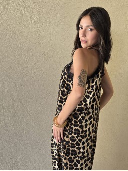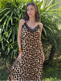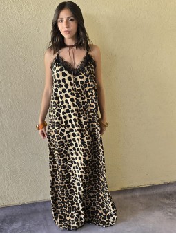 Maxivestido en seda crush con puntilla en escote y espalda. Con breteles regulables. * Consultá las medidas abajo en la descripción.