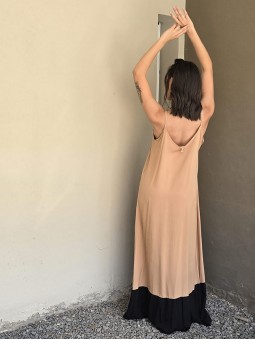 $44.900 ABONANDO EN EFECTIVO EN LOCAL Vestido largo, de poplin combinado, con breteles regulables. * Consultá las medidas abajo en la descripción.