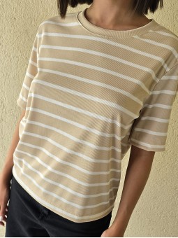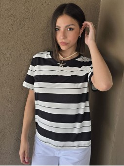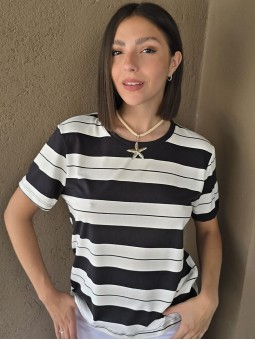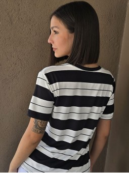 $35.900 ABONANDO EN EFECTIVO EN LOCAL Camisa tejida de hilo de algodón combinada a rayas negras. * Consultá las medidas abajo en la descripción.