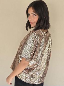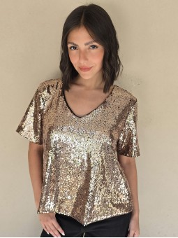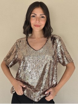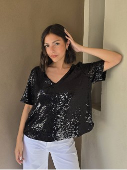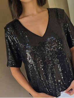 Blusa cuello V de lentejuelas, con forreria interna. * Consultá las medidas abajo en la descripción.