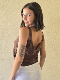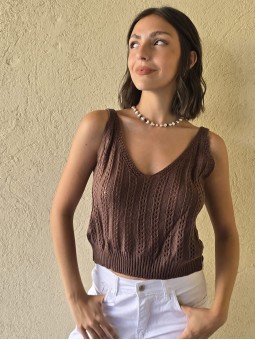 Musculosa tejida con detalle de calado. * Consultá las medidas abajo en la descripción.