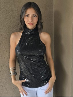 Top halter de microlentejuelas con lazo para atar en espalda. * Consultá las medidas abajo en la descripción.