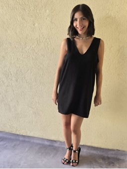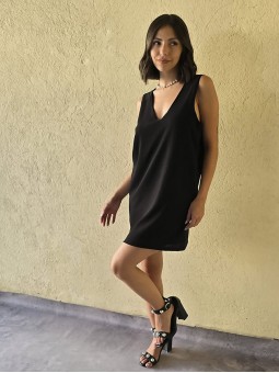 Vestido corto de crepe con recorte en espalda y viso interno. * Consultá las medidas abajo en la descripción.
