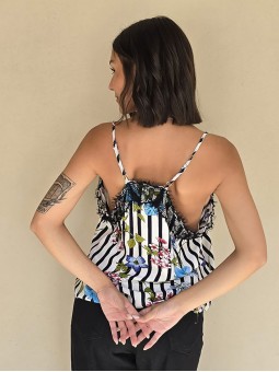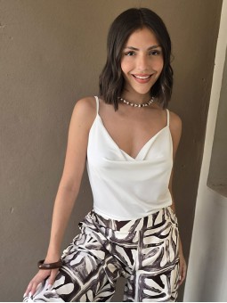 Blusa de saten estampado, con breteles finos. * Consultá las medidas abajo en la descripción.