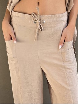 Pantalon pallazo corto (al tobillo) de seda crush, con bolsillos en delantero y cintura posterior elastizada. Cuenta con lazo delantero para regular. * Consultá las medidas abajo en la descripción.