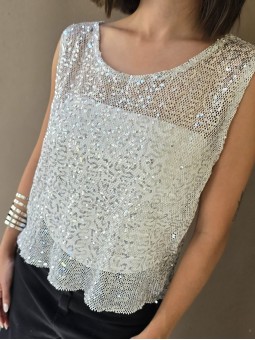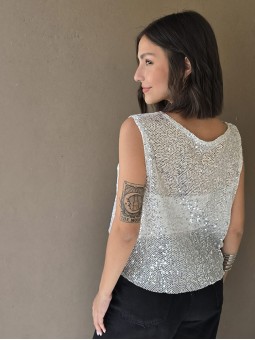 Musculosa de micro lentejuelas plateadas (no incluye el top que esta debajo) * Consultá las medidas abajo en la descripción.