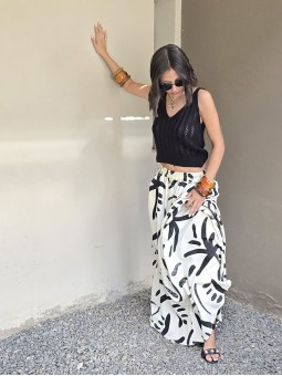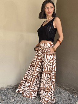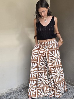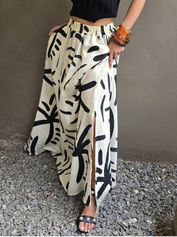 Maxipallazo de lino winoma estampado, con cintura posterior elástica. * Consultá las medidas abajo en la descripción.
