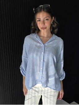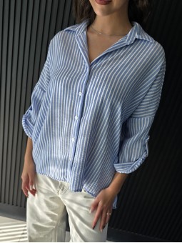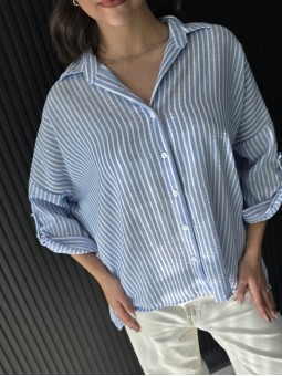 Camisa de lino rayado corte oversize , con manga 3/4 y boton para arremangar. * Consultá las medidas abajo en la descripción.