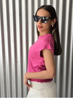 Remera de modal soft con detalle de tachas en mangas. * Consultá las medidas abajo en la descripción.