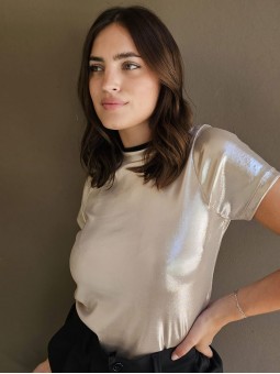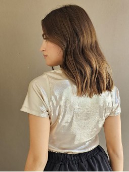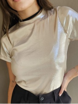Remera manga corta de microfibra metalizada elastizada. * Consultá las medidas abajo en la descripción.