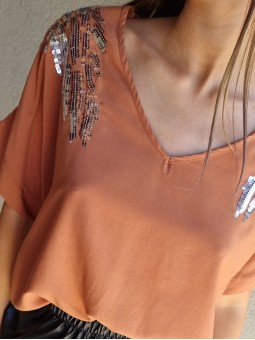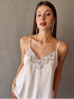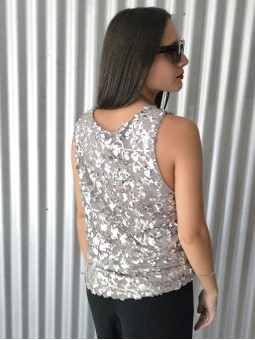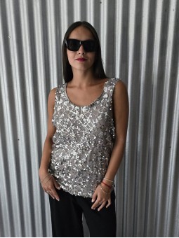 Musculosa importada, con lentejuelas bordadas y forrería interna. * Consultá las medidas abajo en la descripción.
