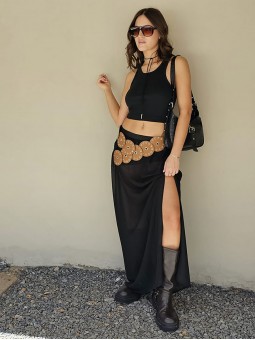 Falda larga de tul con tajo al costado y cintura elástica. * Consultá las medidas abajo en la descripción.