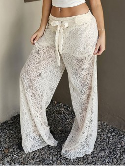 Pallazo de encaje con lazo en cintura y short con viso interno. * Consultá las medidas abajo en la descripción.