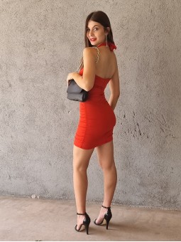 Vestido de lycra con detalle de cadena en escote. * Consultá las medidas abajo en la descripción.