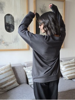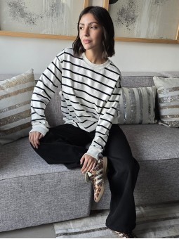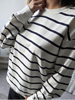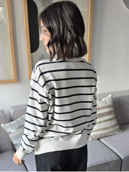Buzo de algodón rústico, corte oversize, con rayas en negro. * Consultá las medidas abajo en la descripción.