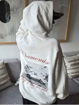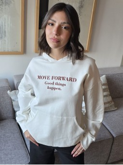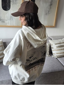 Buzo de algodón frisado con capucha y estampa en delantero y espalda. * Consultá las medidas abajo en la descripción.