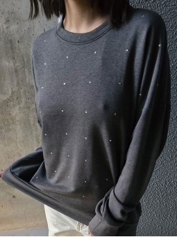 Buzo rústico de algodón con hot fix (tachitas plateadas) * Consultá las medidas abajo en la descripción.