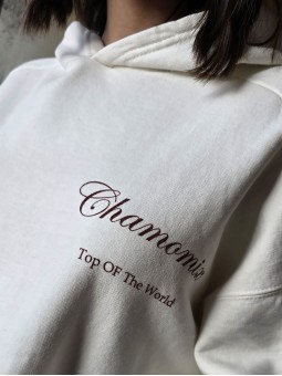 Buzo de algodón frisado con estampa y bordado delantero. * Consultá las medidas abajo en la descripción.
