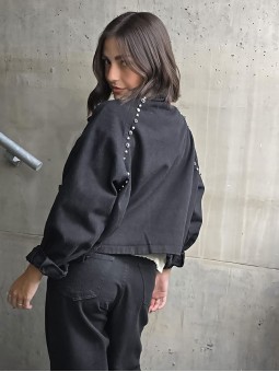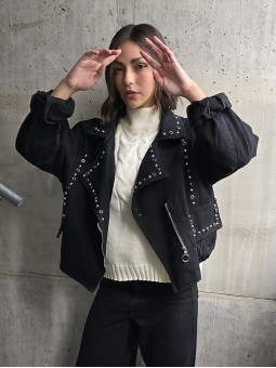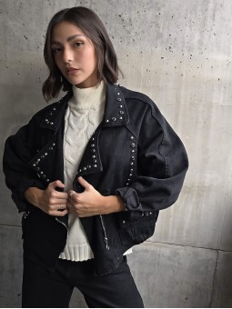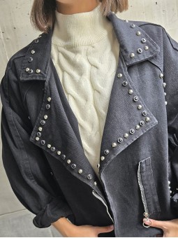 Campera importada, en denim rigido corte oversize, con tachas en frente y espalda. Posee cruce con cierre en delantero y bolsillos frontales. * Consultá las medidas abajo en la descripción