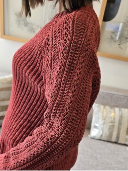Sweater de chenille tejido grueso, con detalle de ochos calados en mangas. * Consultá las medidas abajo en la descripción.
