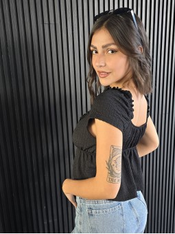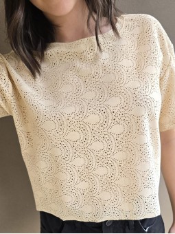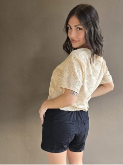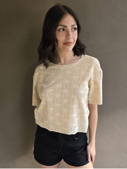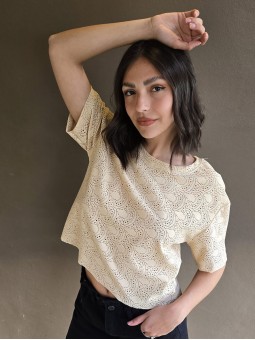 Top crop manga corta, amplio de broderie calado. * Consultá las medidas abajo en la descripción.