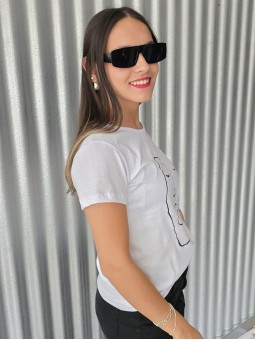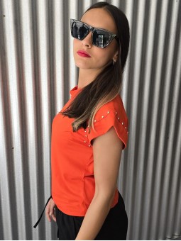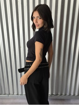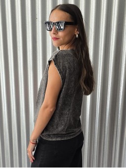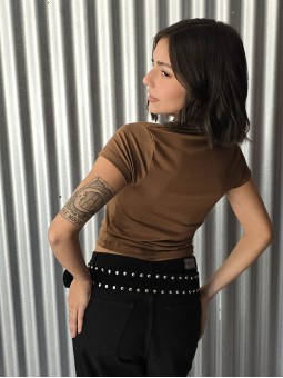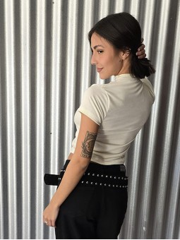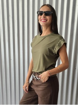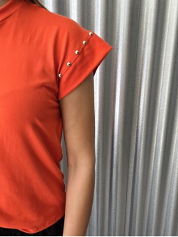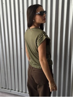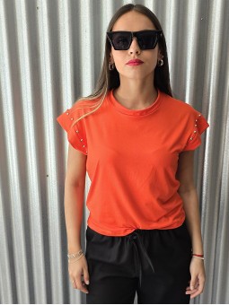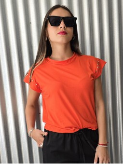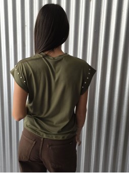 Remera de modal soft con detalle de tachas en mangas. * Consultá las medidas abajo en la descripción.