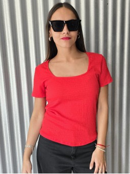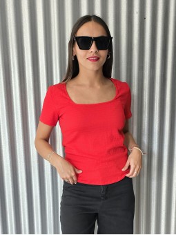 Remera escote cuadrado de género hawai, con mangas cortas. * Consultá las medidas abajo en la descripción.