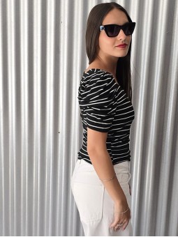 $12.750 ABONANDO CON TRANSFERENCIA Remera manga corta, de ribb de morley rayado. * Consultá las medidas abajo en la descripción.