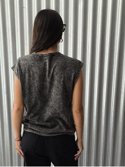 Remera sin mangas de ribb de morley de algodón, con vivo a contratono en cuello y mangas. * Consultá las medidas abajo en la descripción.