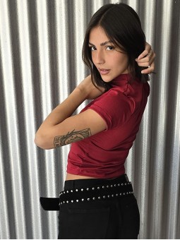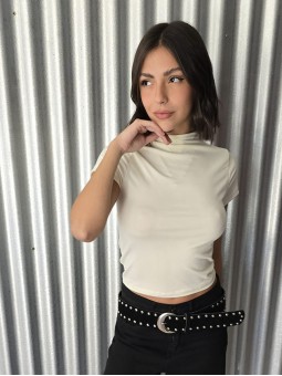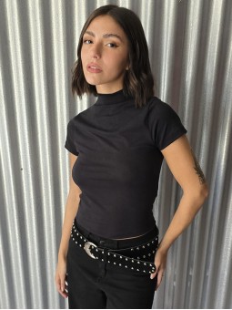 Top cuello alto de modal soft, con mangas cortas. * Consultá las medidas abajo en la descripción.