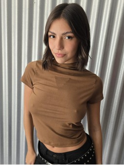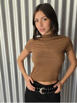 Top cuello alto de modal soft, con mangas cortas. * Consultá las medidas abajo en la descripción