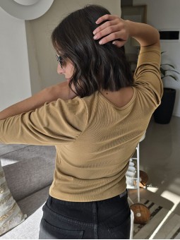 Remera de modal, con escote espejo y manga princesa. * Consultá las medidas abajo en la descripción.