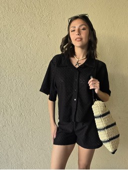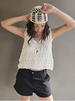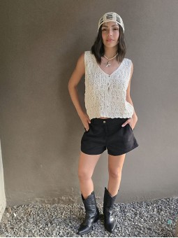 Short de guipure elastizado, con cintura elastizada. * Consultá las medidas abajo en la descripción.