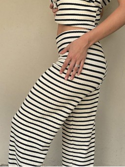 Pallazo tejido de hilo de algodón combinada a rayas negras. * Consultá las medidas abajo en la descripción.