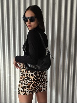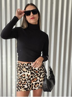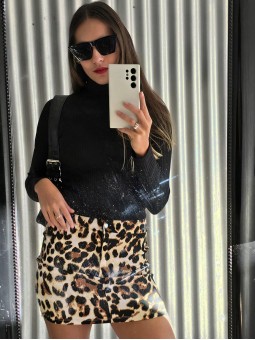 Mini de bengalina animal print con cierre y botón. * Consultá las medidas abajo en la descripción.