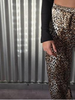 Pantalon de seda animal print, corte wide leg con cintura elastizada y bolsillos. * Consultá las medidas abajo en la descripción.