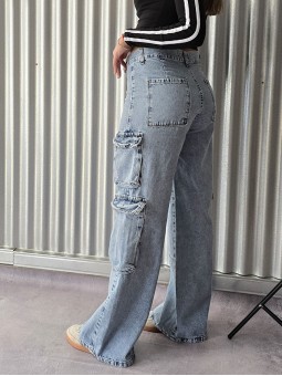 Jean de denim rígido, corte cargo, con bolsillos laterales. *Identificá tu talle en la tabla que figura abajo.