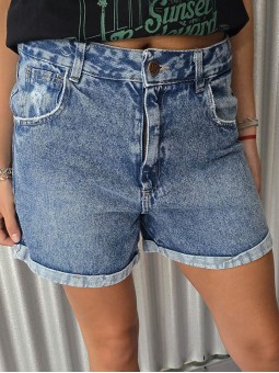 Short mom denim rígido cinco bolsillos con pliegues en botamanga. *Identificá tu talle en la tabla que figura debajo