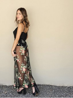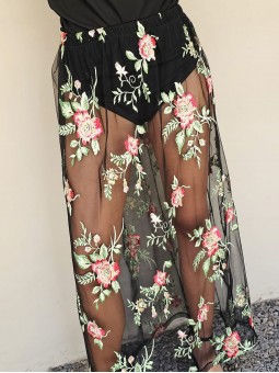 Falda larga de gasa cristal con bordado. Con cullote incorporado de lycra y elástico en cintura. * Consultá las medidas abajo en la descripción.