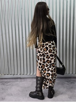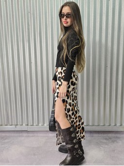 Falda de modal soft con tajo lateral, estampa animal print. * Consultá las medidas abajo en la descripción.
