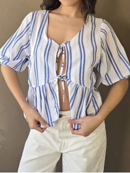 Blusa de poplin, con lazos para atar en delantero y manga globo. * Consultá las medidas abajo en la descripción.