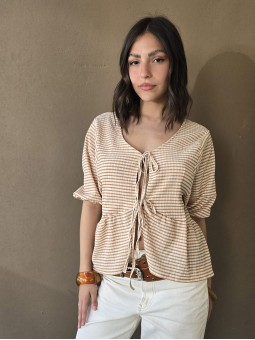 Blusa de crepe de bambula, con lazos en delantero y manga globo. * Consultá las medidas abajo en la descripción