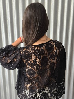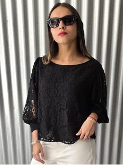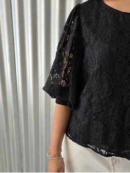 Blusa de encaje guipure importado, con manga globo 3/4. * Consultá las medidas abajo en la descripción.