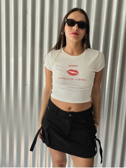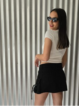 Mini denim rígido cargo, con bolsillos y tiras laterales. * Identificá tu talle en la tabla que figura debajo