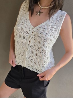 Musculosa tejida con detalle de calado. * Consultá las medidas abajo en la descripción.