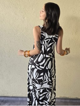 Pantalon de seda animal print, corte wide leg con cintura elastizada y bolsillos.
